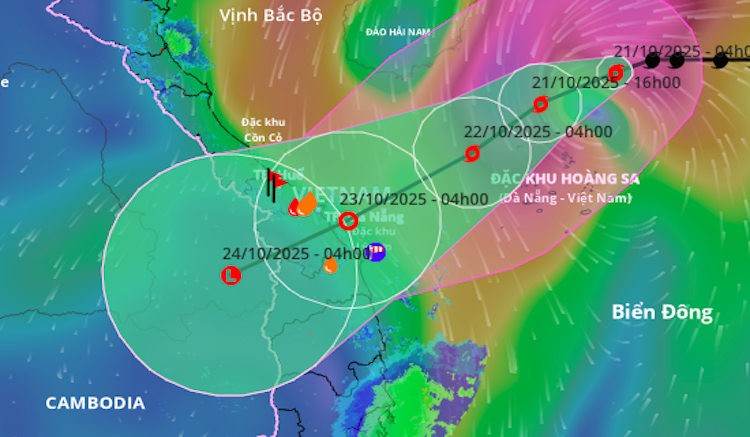 Theo dự báo của Trung tâm dự báo khí tượng thủy văn quốc gia: Trong 24 giờ tới bão di chuyển theo hướng Tây Bắc, đạt cường độ mạnh nhất cấp 11, giật cấp 13 (khi ở khu vực phía Bắc đặc khu Hoàng Sa). Từ ngày mai 21/10 bão tương tác với không khí lạnh, có thể thay đổi cả hướng di chuyển và cường độ. Do ảnh hưởng của hoàn lưu bão, kết hợp với các hình thế thời tiết khác, từ ngày 22-26/10 khu vực Trung Bộ, nhất là từ Hà Tĩnh đến Quảng Ngãi có khả năng cao xảy ra đợt mưa lớn trên diện rộng, kéo dài nhiều ngày, cục bộ có nơi mưa rất to trên 900mm; nguy cơ cao xảy ra lũ quét và sạt lở đất ở vùng núi, ngập lụt ở các vùng trũng thấp và đô thị; lũ trên các sông từ Quảng Trị đến Quảng Ngãi có khả năng lên trên báo động 3.